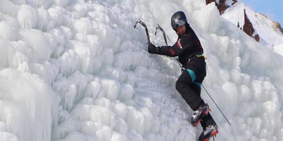 Erzurum Valisi Mustafa Çiftçi, 30 metre yüksekliğinde ve 150 metre enindeki yapay buz duvarına tırmandı.