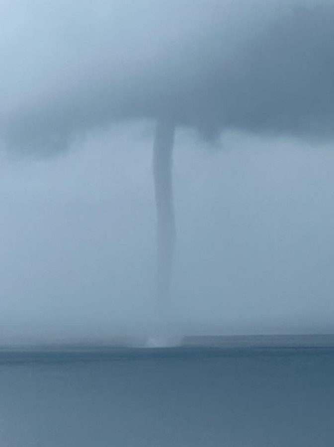 Van Gölü kıyısındaki Edremit ilçesinden görülen hortum, cep telefonu kamerasına yansıdı.