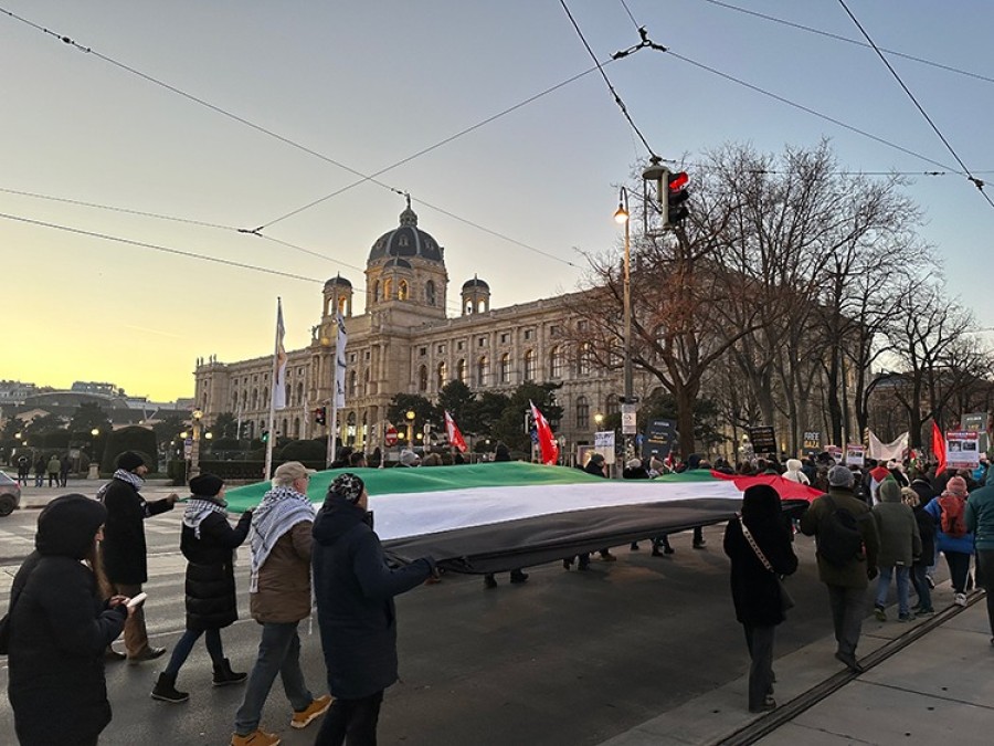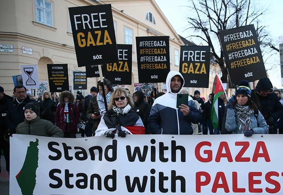 Avusturya'nın başkenti Viyana'da, İsrail'in, 23 binden fazla Filistinlinin ölümüne neden olan saldırıları bir kez daha protesto edilerek, acil ateşkes çağrısında bulunuldu.