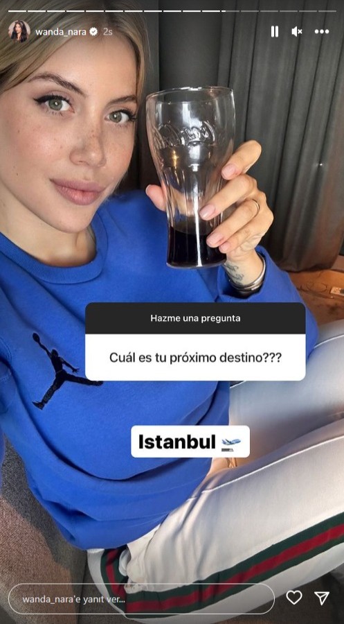 Arjantinli yıldızın eşi ve aynı zamanda menajerliğini de yürüten Wanda Nara, sosyal medya hesabından bir takipçisinin "Bir sonraki durağınız neresi olacak?" sorusuna "İstanbul" yanıtını verdi.