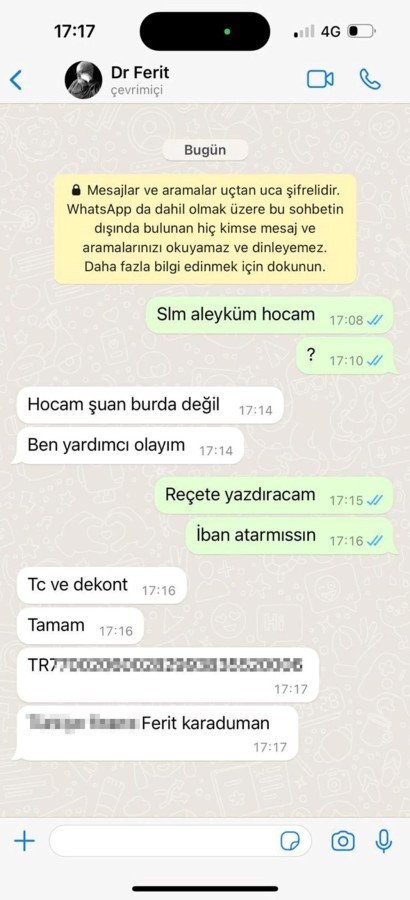 3 bin TL'ye hastayı bile görmeden e-reçete yazan Ferit Karaduman'ın uyuşturucu satıcılarından hesabına gönderilen paranın dekontunu istediği dekontu görmeden e-reçete yazmadığı belirlendi.