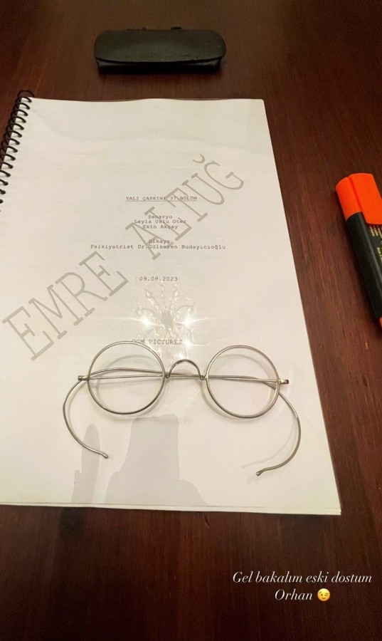 Ünlü oyuncu, 37. bölüm senaryosunun fotoğrafına "Gel bakalım eski dostum Orhan" notunu ekledi.