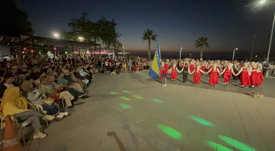 Ülkeleri temsil eden ekipler, Gazipaşa Caddesi'nde kendilerine özgü halk danslarını sahneledi.