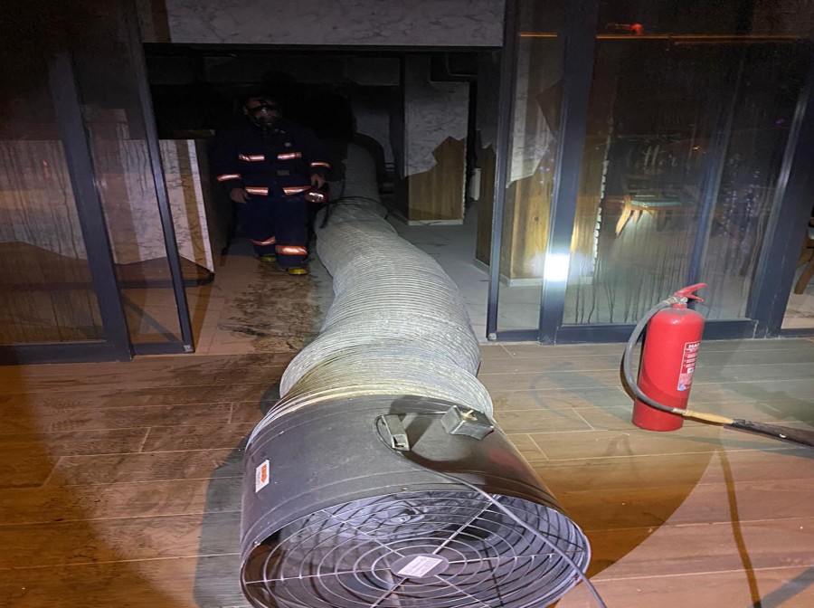 Ekipler yangından etkilenenleri otelden tahliye etti. İtfaiye yangını söndürdükten sonra soğutma çalışması gerçekleştirdi.