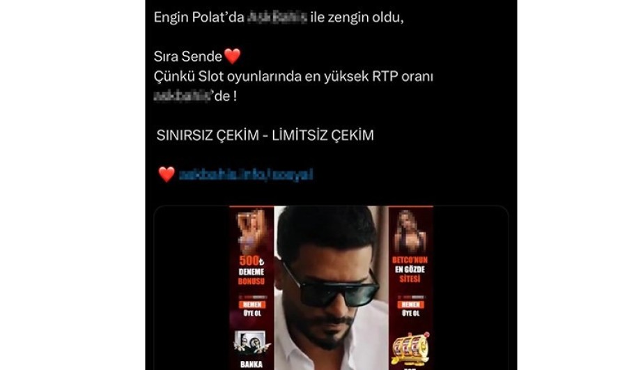 Sosyal medya sitesi üzerinden bir bahis hesabı reklamında Engin Polat'ı kullandı. Hesap yaptığı reklamda kendinden bahsederek Engin Polat'ta burada zengin oldu başlığıyla Polat'ın görsellerine yer verdi.