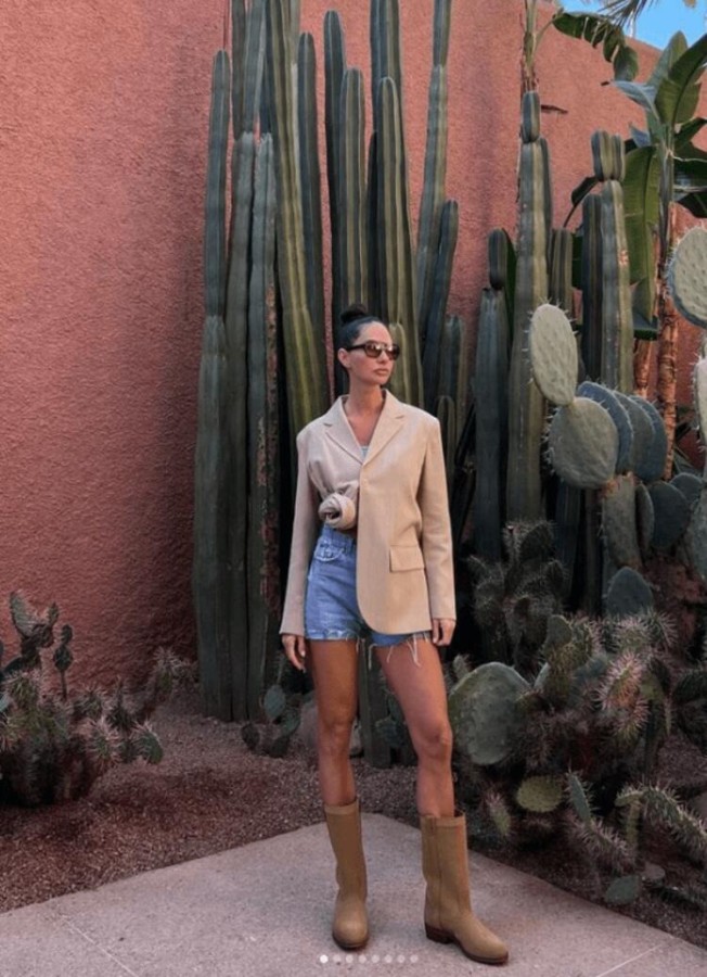 Yasemin Özilhan'ın bu kombininde ise; ceketi Jacquemus marka, 1180 Euro (24 bin 130 TL), gözlüğü Vehla Eyewear 2700 TL, botu ise Celine.