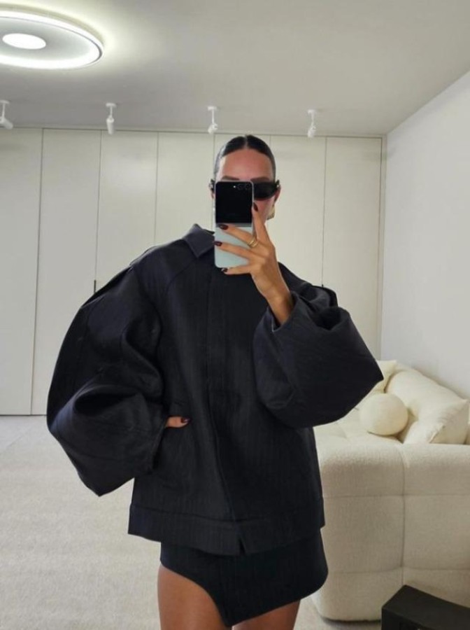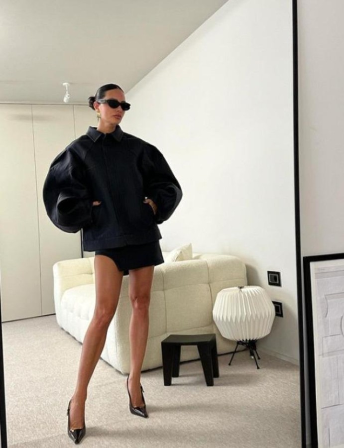 Oversize bir ceket giyen Yasemin Özilhan kombinini süper mini eteği ve gözlükleriyle tamamladı. Ünlü ismin pozları kısa süre beğeni ve yorum aldı.