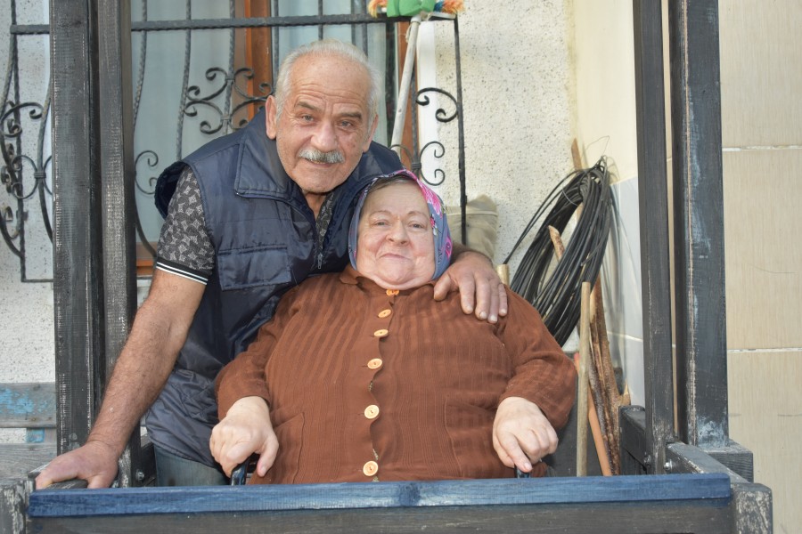 Ordu'nun Perşembe ilçesinde Durdu Okur (72), hastalığı nedeniyle dışarı çıkamayan yatağa bağımlı eşi Meryem Okur (73) için oturdukları binanın dışına asansör yaptı. Hayatını 47 yıllık evli olduğu eşine adayan marangoz Durdu Okur, boş vakitlerinde de kendi yaptığı saz ve kemençeyi çalarak eşinin motive olması için çaba sarf ediyor.