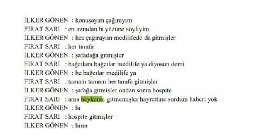 Soruşturmada tutuklu bulunan isimlerden birinin teknik takipte Beykent Üniversitesi Hastanesi'nde yenidoğan doktoru olarak çalışan Hayrettin Yıldız ile konuştuğu, bu konuşmanın detaylarını çete lideri Fırat Sarı'ya aktardığı görüldü.