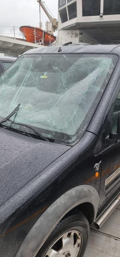 Şiddetli rüzgarın etkisiyle yükselen dalgalar vapurda bulunan bazı araçların camının kırılmasına ve göçük oluşmasına neden oldu.