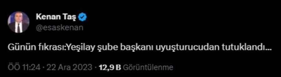 Zorlu'nun tutuklandığı haberini gazeteci Kenan Taş sosyal medyadan "Günün fıkrası:Yeşilay şube başkanı uyuşturucudan tutuklandı..." sözleriyle duyurdu.