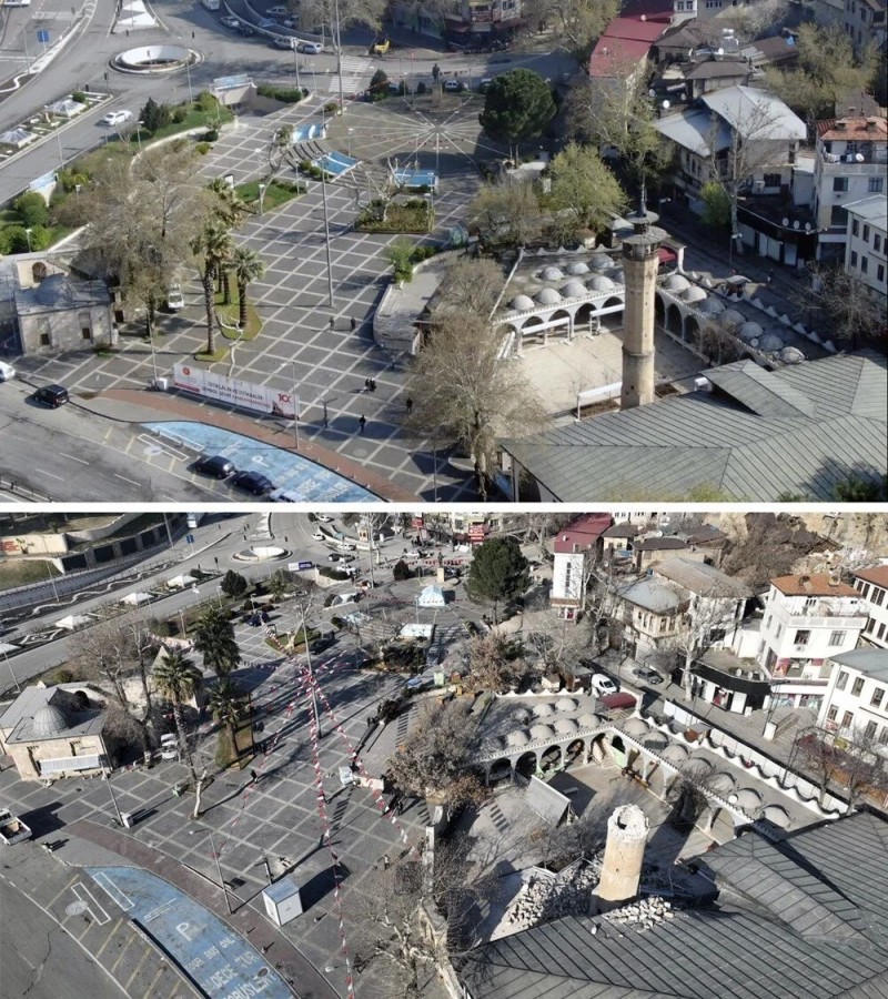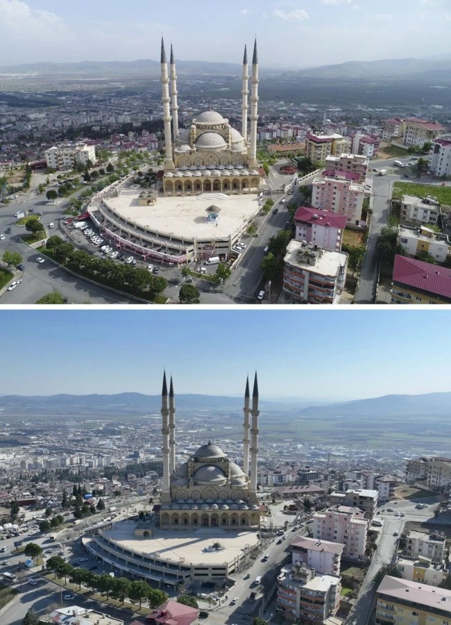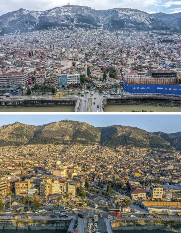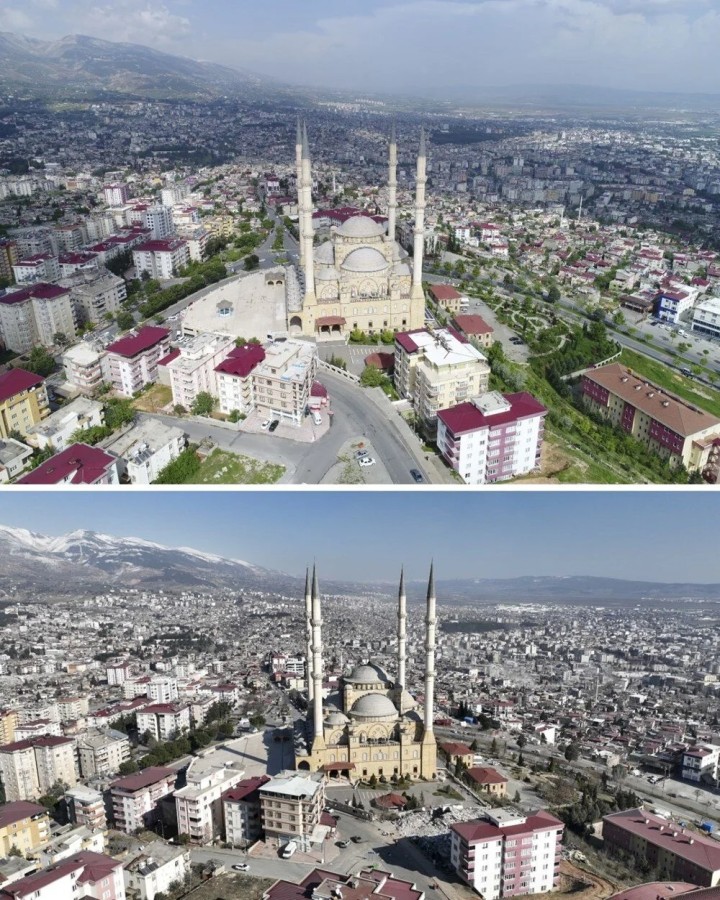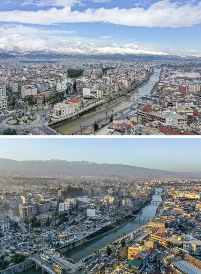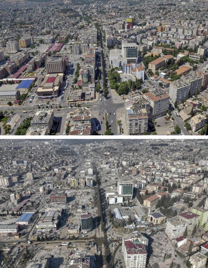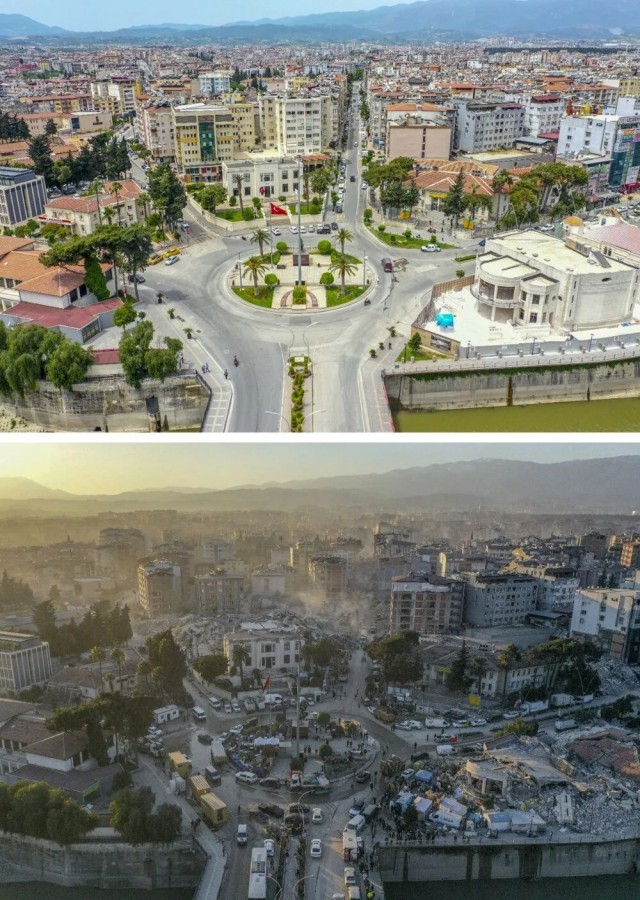 Kahramanmaraş ve Hatay kent merkezinin daha önceden çekilen fotoğraflarıyla deprem sonrası fotoğrafları yıkımın boyutunu da gözler önüne serdi.