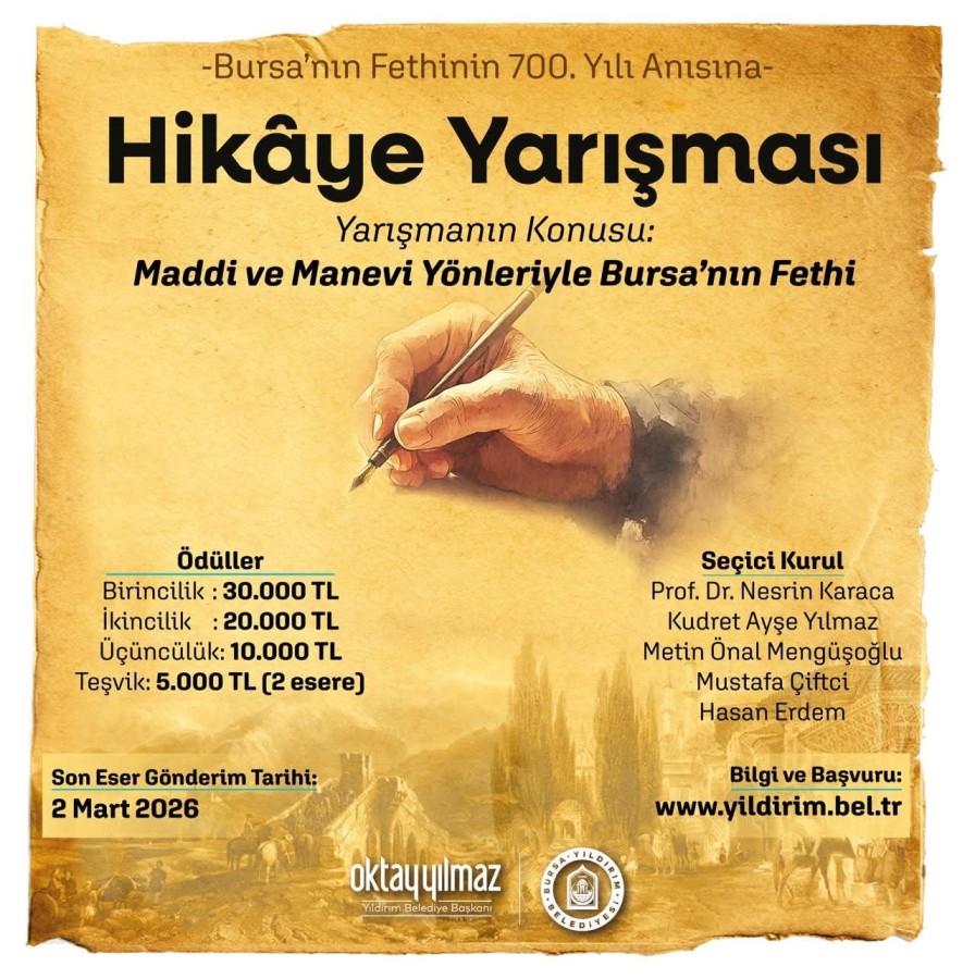 Tüm sanatseverleri ve kalemine güvenen edebiyat tutkunlarını yarışmalara katılmaya davet eden Yıldırım Belediye Başkanı Oktay Yılmaz; "Bursa'nın fethi, yalnızca bir şehrin değil, bir medeniyetin kapılarının açılması anlamına gelir. Bu büyük zaferin 700. yıl dönümünü, sanat ve edebiyatla yaşatmak istiyoruz. Yarışmalarımız aracılığıyla hem tarihimize sahip çıkıyor hem de gelecek nesillere ilham kaynağı olacak eserlerin ortaya çıkmasını hedefliyoruz" ifadelerini kullandı.