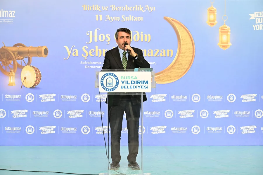 Şehit yakınları, gaziler ve misafirlerin Ramazan'ını tebrik eden Yıldırım Belediye Başkanı Oktay Yılmaz, "Bugün, vatanımız için canlarını feda eden aziz şehitlerimizin yakınlarıyla ve kıymetli gazilerimizle birlikte iftar yapıyor olmanın mutluluğunu yaşıyorum. Malumunuz milletimiz bu aziz toprakları ebedi vatan kılmak için çok zorlu imtihanlardan geçti. Şehirlerimiz talan edildi, kasabalarımız, köylerimiz yakıldı, yıkıldı. Ne yaptılarsa bizi bu topraklardan söküp atamadılar, Ezan-ı Muhammedi'leri susturamadılar, şanlı bayrağımızı indiremediler ve en önemlisi bizleri esir edemediler. Karşılaştığımız bütün badirelerden, şehitlerimizden ve gazilerimizden aldığımız ilhamla, Malazgirt ruhuyla, Çanakkale ruhuyla kurtulduk" ifadelerini kullandı.