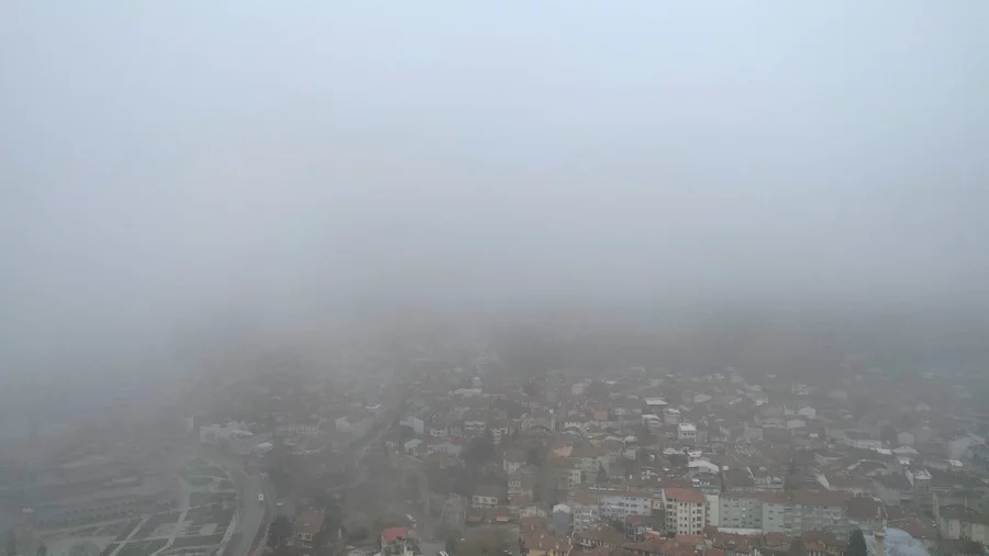 Sabahın ilk saatlerinde özellikle yamaç bölgelerde yoğun şekilde görülen sis tabakası, zamanla aşağı kesimlere doğru inerken şehir siluetini de kapladı.