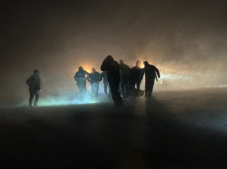 İş makinesine ulaşan ekipler, ağır yaralanan iş makinesi operatörü Şen'i, sedyeyle yaklaşık 500 metre taşıyarak, düzlük alanda bekleyen paletli ambulansa taşıdı.