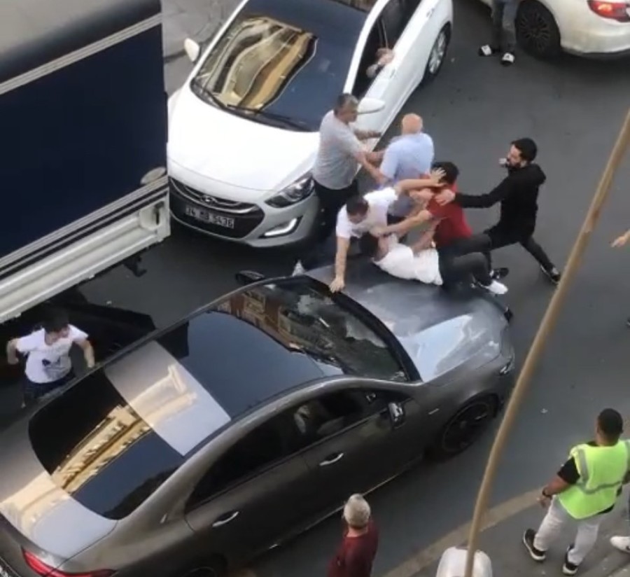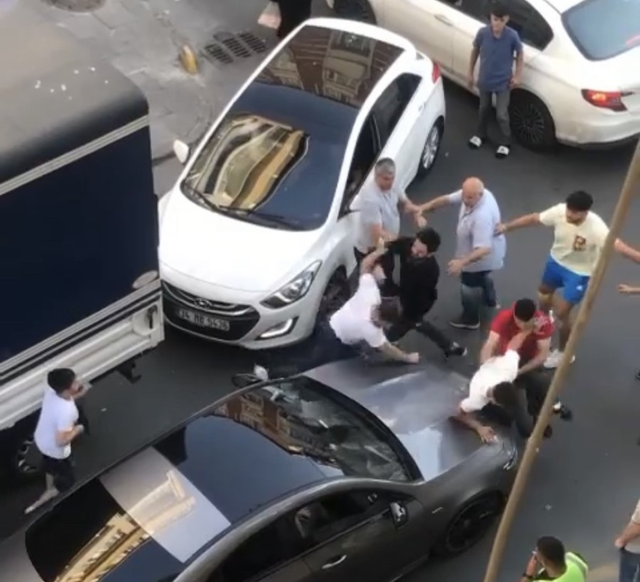 İstanbul Fatih'te yol verme tartışmasında tekme ve yumruklar havada uçuştu. O anlar bir vatandaş tarafından cep telefonu kamerasıyla kayıt altına alındı.