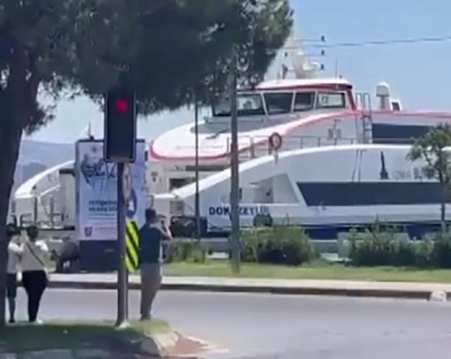 İzmir'in Karşıyaka sahilinde bir yolcu gemisi kıyıdaki beton duvara çarptı.
