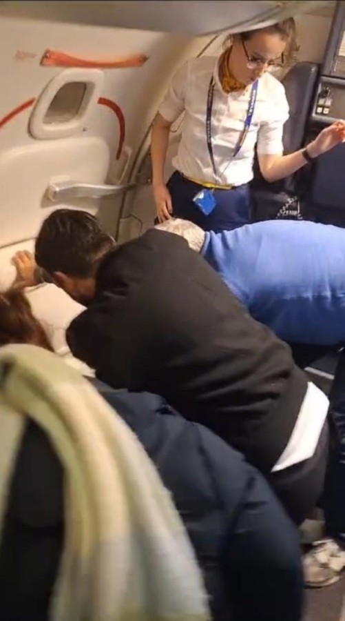Alkollü kadının Türk yolcuya saldırıp dudağından yaralaması üzerine iki kadın kavga etmeye başladı. Araya giren hostesler ve yolcular kavgayı ayırdı. Alkollü kadın, yere yatırılarak zor zapt edildi. Yaşananlar, başka bir yolcu tarafından kayıt altına alındı.