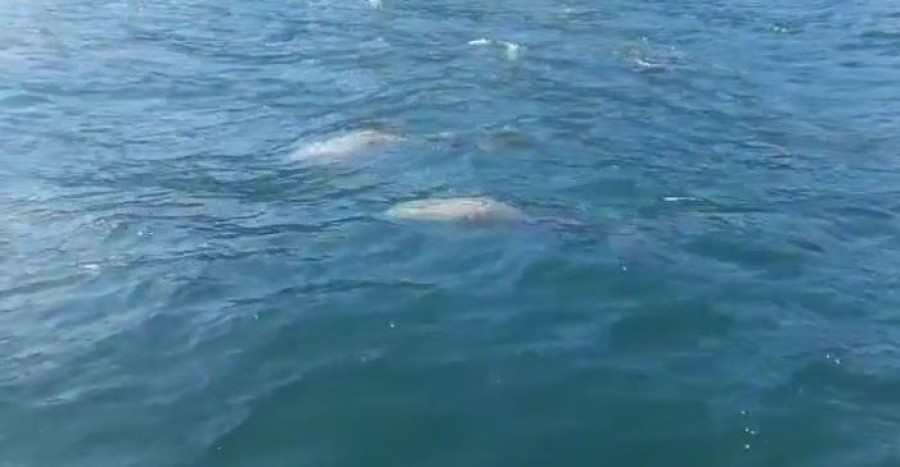 Teknedeki vatandaşlar ise birkaç yunus balığının kendilerine yaklaştıklarını fark ederek onları kameraya aldı.