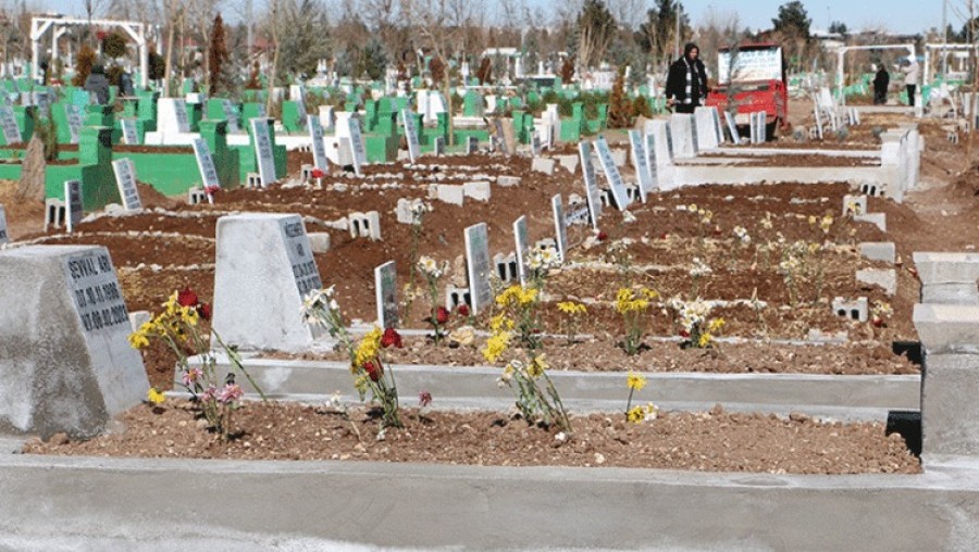 Kahramanmaraş merkezli, 10 ilde etkisini gösteren ve Türkiye'yi yasa boğan depremde yaşamını yitirenler defnedildi, Diyarbakır'da mezar taşlarına hayatını kaybedenlerin hatıraları asıldı.