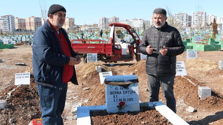 Kardeşi ve yeğenleri için mezarlıkta dua okumaya gelen Bahattin Ertük, aynı ailede bulunan 5 kişiden 4'ünün vefat ettiğini belirtti. Ertük, "4 kişiydiler Yoldaş apartmanında Allah kimsenin başına vermesin çok zor. Tüm insanlar için aynı acı çekiliyor. Benim ailemden 5 kişi enkazdaydı 1'i kurtuldu 4'ü öldü, dileğim Allah'tan bu acıyı yaşayan herkese sabır versin tüm ölenlere rahmet etsin" dedi.