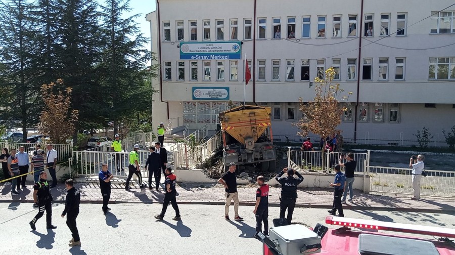 Araç sonra Milli Eğitim Müdürlüğüne bağlı E-Sınav Merkezi önündeki koruma duvarını aşmasının ardından ön lastiklerin patlaması neticesinde durabildi.