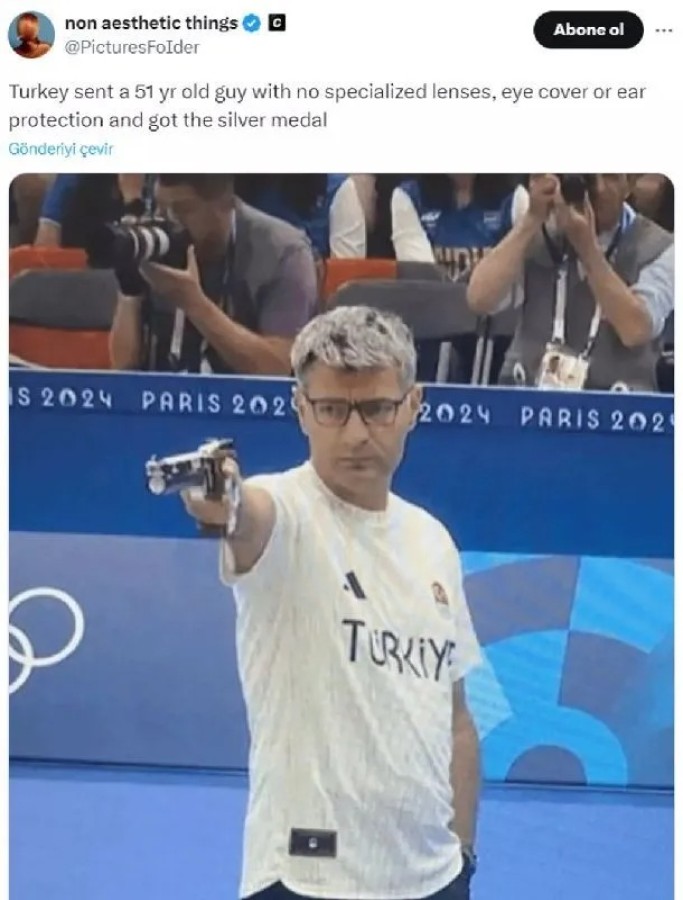 Hiçbir teçhizatı olmadan, bir eli cebinde atış yaparak Olimpiyat gümüş madalyasını Türkiye'ye getirdi.