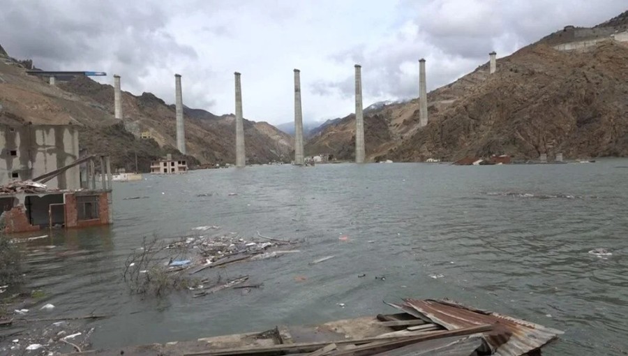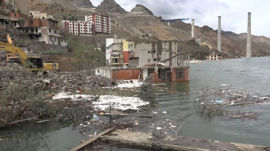 İlçenin yanı sıra, yol ve köprülerin sulara gömüldüğü eski yerleşim yerinde, birçok bina da görünmez oldu.