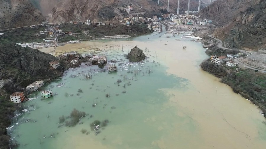Geri dönüşüm yıkımlarıyla 'hayalet kent'e dönen ilçe, yeni yerleşim alanlarında oluşturulan ilave iş yerlerine esnafın nakledilmesinin ardından, anılarla birlikte sulara gömülecek.