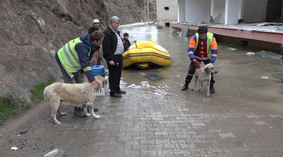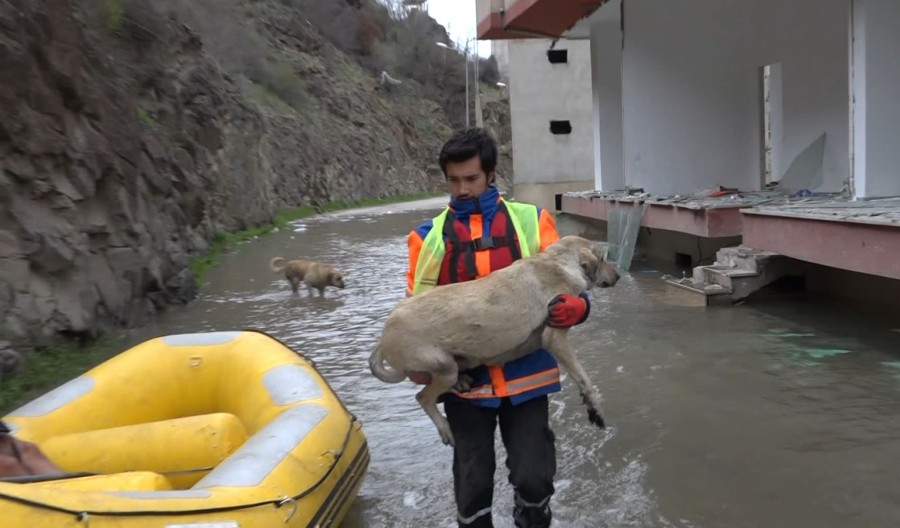 Kano federasyonunda sporcu olan İbrahim Yılmaz ise, "Haber alınca buraya geldik. Saatlerdir hayvanları kurtarmaya çalışıyoruz. Botlarla açılıyoruz. Binalar var aslında, onların arasından geçmek falan zor oluyor. Hava da soğuk ama her canlıyı kurtarana kadar devam edeceğiz" diye konuştu.