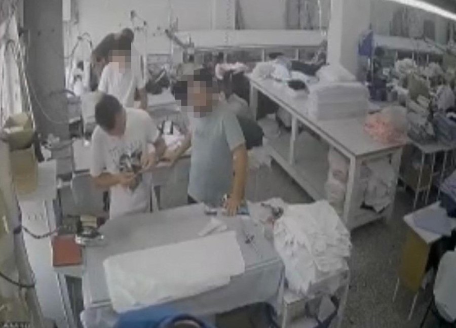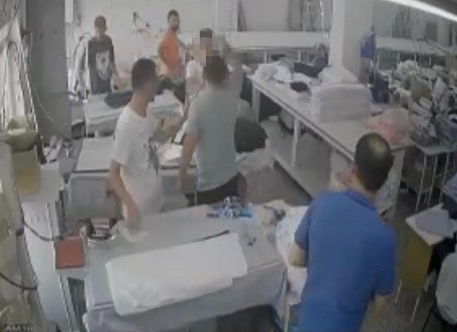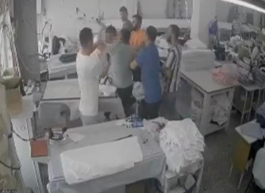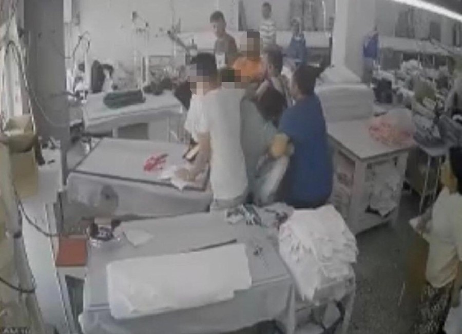 Ardından işçilerden birisi tartıştığı iş arkadaşının yüzüne kumaş parçası fırlattı.
