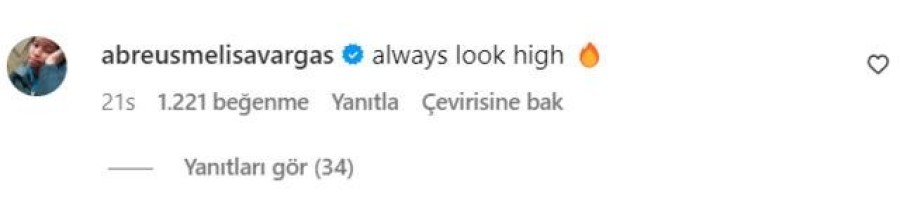 Melissa Vargas ise paylaşıma "Her zaman yüksekte görün" yorumunu yaptı.