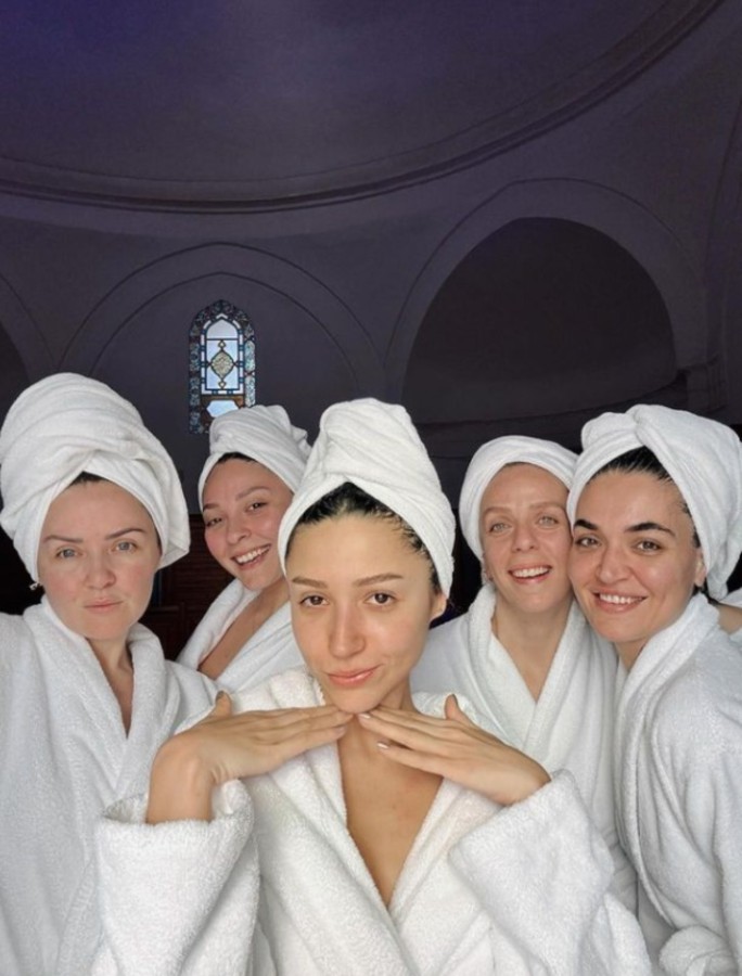 Arkadaşlarıyla hamama giden ünlü isim bornozuyla poz verdi. Bastık'ın hamam pozları kısa sürede beğeni ve yorum yağmuruna tutuldu.