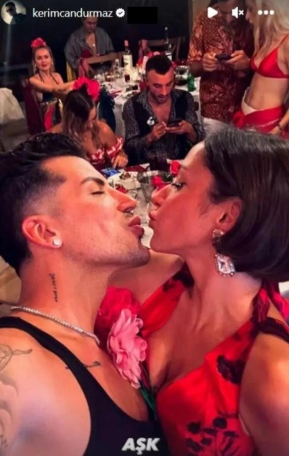 Partide çılgınlar gibi dans eden Bastık, yakın arkadaşı Kerimcan Durmaz ile dudak dudağa paylaşım yaptı.