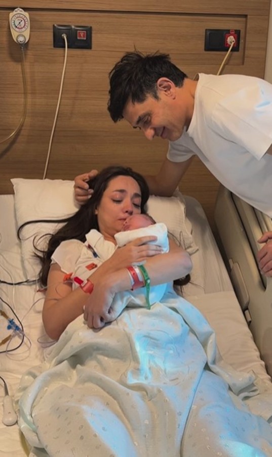 Oğullarıyla hastanede verdikleri ilk pozu da paylaşan oyuncu çifte binlerce tebrik mesajı geldi.