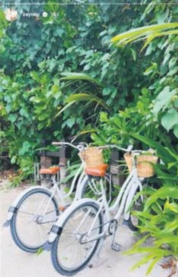 Maldivler'de çekilmiş, yan yana iki bisiklet fotoğrafını 'Adada kalanlar' notuyla, önceki gün de kucak dolusu gül fotoğrafını paylaştı.