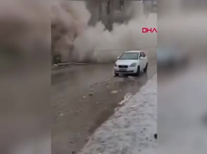 7.6'lık deprem sonrası Elazığ'da bir binanın yıkılma anları kameralara yansıdı.