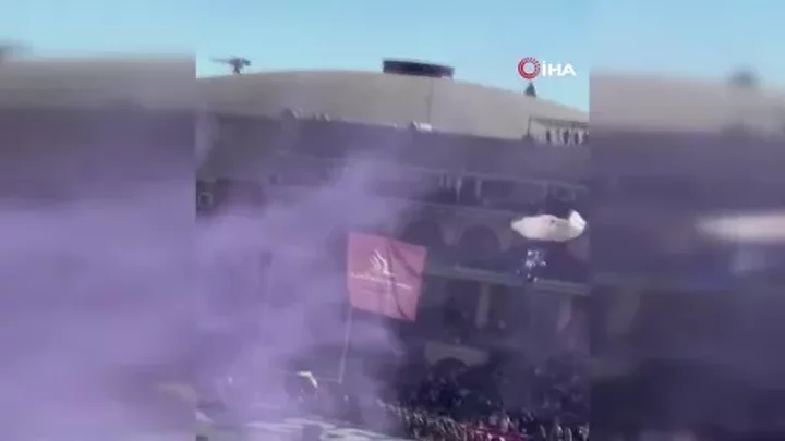 ABD'nin Teksas eyaletindeki bir Amerikan futbolu müsabakası öncesinde sahaya iniş yapmaya çalışan paraşütçü, kale arkasındaki ağlara takılarak yaklaşık 10 metre yükseklikten tribüne çakıldı.