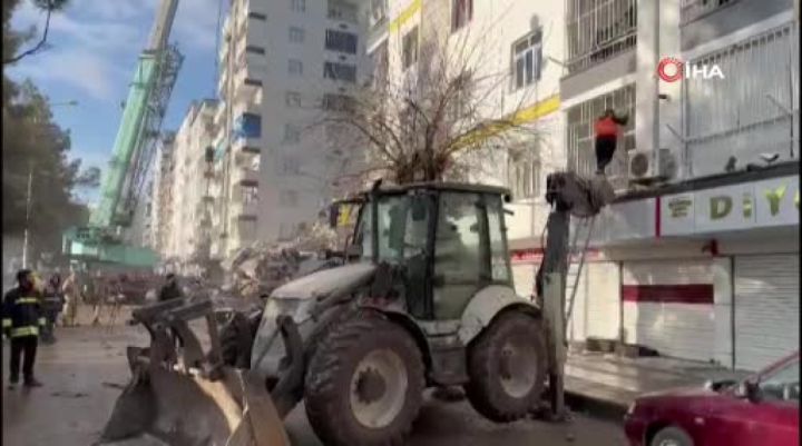 Bağlar ilçesinde bulunan enkaz çalışmaları sırasında ağır hasarlı olan yan binada bir kedi olduğu fark edildi. Arama kurtarma ekipleri aç kalarak yorgun düşen kediyi kepçe yardımıyla binanın 2'nci katından kurtarmayı başardı. Mama verilen kedi daha sonra güvenli bölgeye alındı.