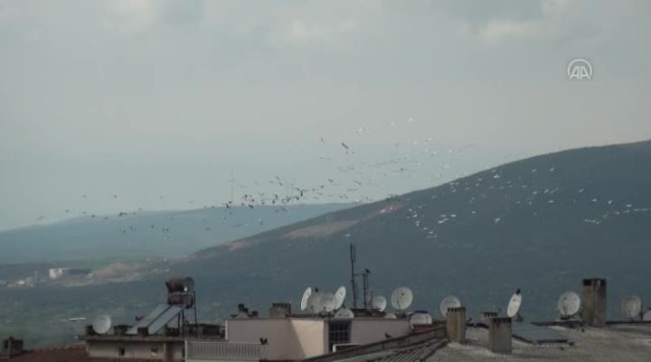 Ak pelikanların sürü halindeki geçişi Bursa'nın Karacabey ilçesinde kameralarla kaydedildi.