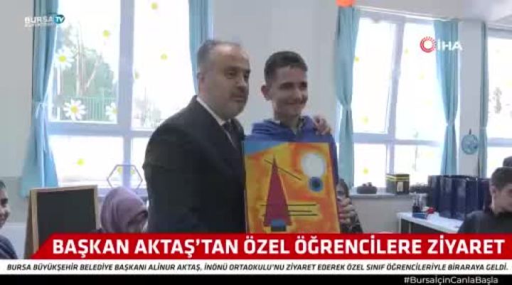 Bursa Büyükşehir Belediye Başkanı Alinur Aktaş, İnönü Ortaokulu'nu ziyaret ederek özel sınıf öğrencileriyle görüştü.