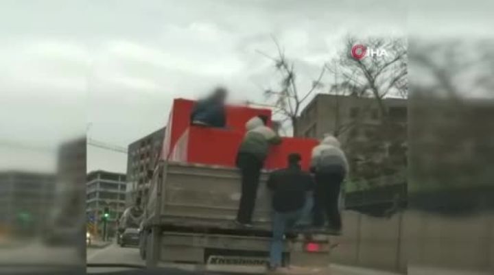 Bursa'da 3 genç, kamyonun arkasında canlarını hiçe sayarak seyahat etti. O anlar kameraya yansıdı.