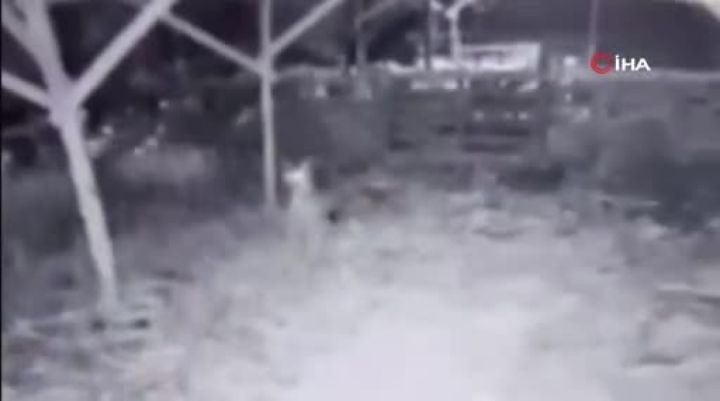 Bursa'da koyunların bulunduğu ahıra girmeyi başaran kurt, 2 koyunu yaralarken 1 kuzuyu da alarak girdiği yerden çıkarak kaçtı. Saldırı anı güvenlik kamerasına saniye saniye yansıdı.