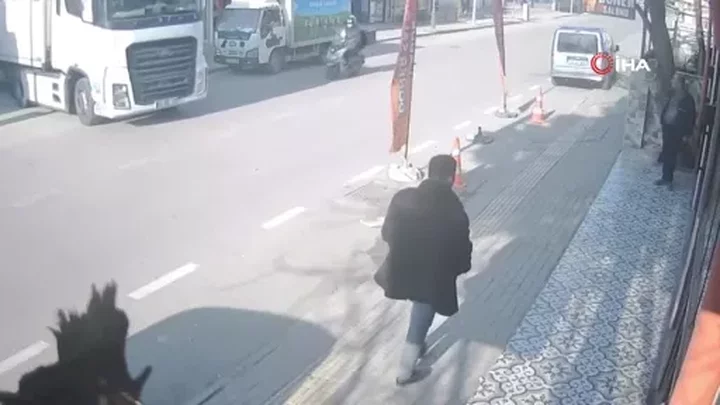 Bursa'da anayolda seyir halindeki motokurye, ara yoldan çıkan tıra çarpıp savruldu. Kaza anı kameraya yansırken, yaralı hastaneye sevk edildi.