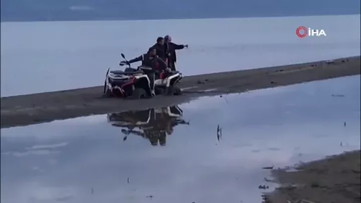 Bursa'nın İznik ilçesine bağlı Boyalıca Mahallesi sahilinde ATV motosikletiyle gezintiye çıkan adam, yağışların ardından balçığa dönüşen kuma saplandı.