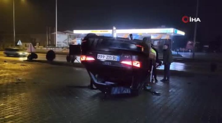 Bursa'nın İnegöl ilçesinde babasından izinsiz aldığı otomobil ile ilerlerken yayalara çarpmamak için ani manevra yapan sürücünün kontrolünden çıkan otomobil taklalar atarak devrildi. Kazada 3 kişinin yaralandığı belirtildi.