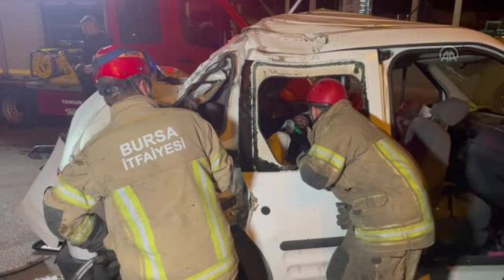 Bursa'nın Yıldırım ilçesinde, bir araç demir bariyere çarparak kontrolü kaybetti. Çarpmanın etkisiyle takla atan araçta iki kişi yaralandı.