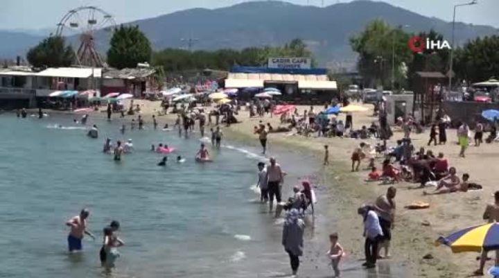 Bursa'da 9 günlük bayram tatilinin son gününde vatandaşlar sahillere akın etti. Termometrelerin 33 derece göstermesiyle denize girenler hem serinledi hem de doyasıya gönüllerince eğlendi.