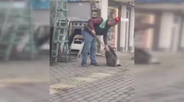 Bursa'da bir vatandaş elindeki fırçasıyla sokak köpeğini temizledi. Vatandaşın köpekle olan görüntüsü yürekleri ısıttı.